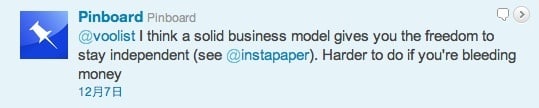 在表达自己的观点后,Pinboard 在 Twitter 上收到反对意见,很多人认为被大公司收购也不失为一种归宿。不过,Pinboard 的回答是: