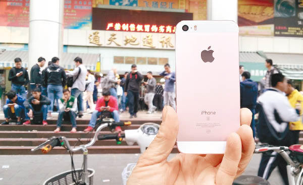 在这里有不少店面正在高价回收 iPhone 5 和 iPhone 5s,而记者发现在这里仅需六十多元人民币便能够将一个 iPhone 5 或者 iPhone 5s 的后壳翻新并镭射上 SE 字样。