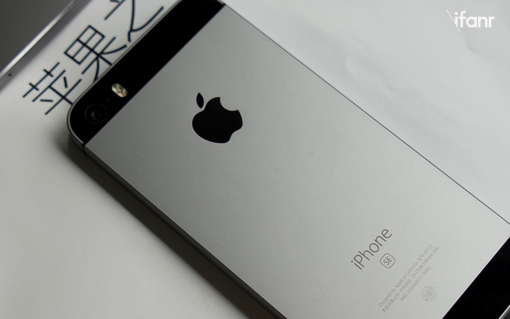 - 背面:iPhone SE 背面下方有打上“SE”的标志,而背面的苹果 logo 是从 iPhone 6 开始的不锈钢镶嵌设计,比先前一体成型的 logo 更有质感。