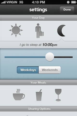 第一次进入软件界面,它会要求用户进行设置“自由时间”,比如平时睡觉的时间、什么时候起床等。这样做是为了了解用户活动时间和休息时间,这样才能找出真正的空闲时间。
