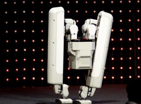 Schaft 的双足机器人虽是两条腿走路,但它并不是模仿人类行走,其走动原理更像是机器运转,和轮子在轨道上运动类似。电机和电池也均匀分布在了两条腿上使得重心偏下,达到更加稳定的效果。