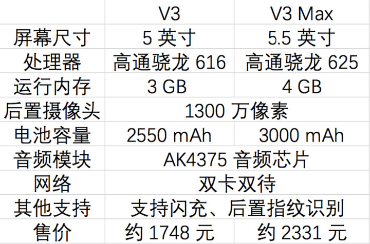 除此之外,V3 Max 在 3C 认证中心的数据库中存在两个版本,分别为 V3 Max A 和 V3 Max L,两款机型的差别应该在网络支持方面。