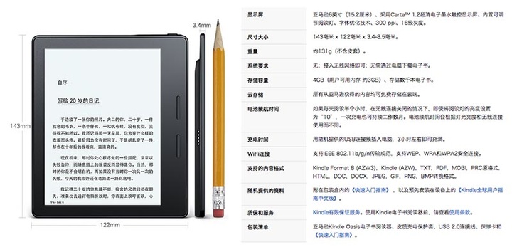 如果想对比 Kindle 所有产品的详尽参数,上面的这张图应该可以一目了然。