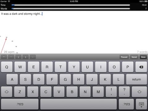 然后开始开始写作,上方显示倒计时,以及字数统计。左下方会显示每分钟字数,看上去像是个速度计。