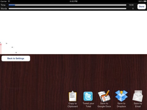 在写完之后,可以选择保存到剪贴板、发送到 Twitter、保存到 Google Docs,Dropbox 和电子邮件。
