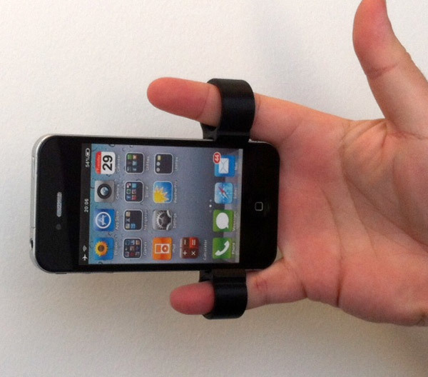 这是一个辅助人用手机拍摄视频的装置,它的作用是能够让人的手保持稳定性,这样拍出来的视频不会“晃来晃去”。它的设计很简单,就是一个套在 iPhone 上的卡扣,外加两个让手指伸进去的指套,估计国内任何一个山寨厂都能够生产。对于一些喜欢用手机拍下身边有趣时刻的人来说,这是一个必不可少的辅助工具。