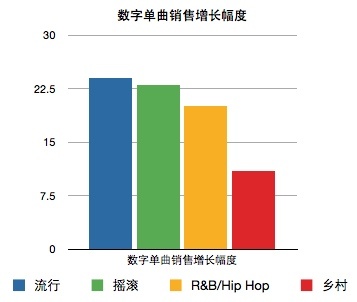 流行、摇滚、R&B/Hip Hop 以及乡村音乐数字单曲销售都有大幅度的增长,分别是 24%、23%、20%、11%。值得注意的是,2011 年有八名音乐家的数字单曲销量超过了一千万美元: