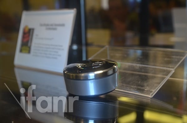 这家公司在今晚展厅的地理位置不错,也成了我第一个驻足的展位。工作人员向我展示的还只是测试机,它是一款小巧的侦测器,可以通过蓝牙接收来自其它配件所测量到的人体健康状况的数据信息(心跳、血压等等)。一旦使用者发生意外,或者健康体征发生状况,这只车钥匙大小的设备就会向使用者的家属或者急救中心发出求救信号。相信这是一款针对老年人健康而专门设计的产品。