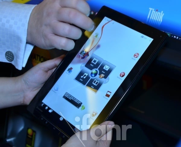 联想应该算是今晚会场阵容最最庞大的厂商了。在占据了相当3-4 家公司大小的展位上,联想拿出了 Ideapad U系列笔记本和 IdeaTab S2 平板,智能电视 K91,IdeaCenter 桌面电脑,3D电视,Thinkpad Ultrabook 和 X1 Hybrid笔记本。其中亮点也不少,这从联想展位前总是人头攒动也可说明这次联想祭出了许多拳头产品。