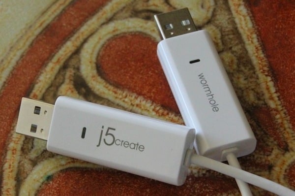 又是一款今晚让人眼前一亮的小配件。J5 Create 设计生产了数款互联 PC 和 MAC 电脑的产品,包括一个棒状的基座和一根看似机器普通的数据线。两者都有着非常相似的功能,只要用它们将一台 Mac 和 PC 相连,原本互相“打架”的两款设备立即就互通无阻了。用户只需用鼠标拖拽目标文件从这个屏幕到另外一台屏幕,就完成了文件传输的工作。设置你可以用一台的笔记本控制另外一台,非常实用的协作功能。