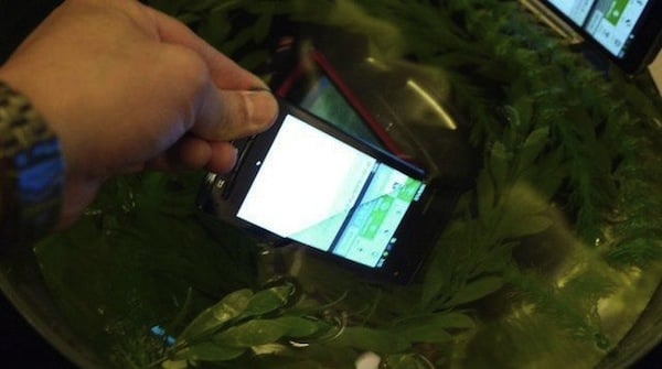 富士通今天展示了包括全系列智能手机和平板在内的全防水产品。虽然这些产品在中高端的手机中并不鲜见,但当富士通的纽约总经理池田裕一在工作人员演示 demo 时将一整瓶矿泉水浇向平板时,还是让一旁的一些媒体朋友们低声称赞。