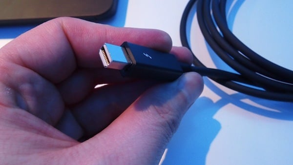 这些设备都使用了由 Sumitomo 生产的连接线连接,但上面没有贴牌。英特尔并没有透露该连接线的价格,但应该比苹果 50 美元的报价要低。目前 Thunderbolt 的连接线均采用铜线,长度上线为 3 米,英特尔曾经承诺去年下半年推出光纤线缆,如此连接线的长度可以长达数十米。但在展会上,英特尔没有透露光线线缆会于何时推出。