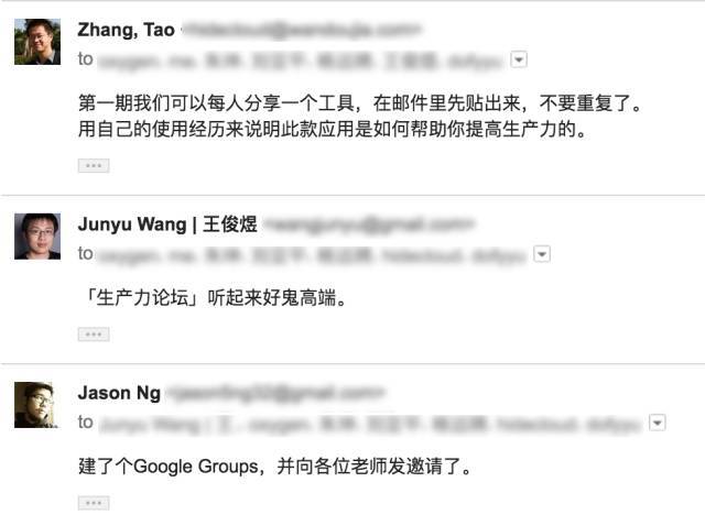 可能是在 Google 工作过的原因,他非常认可“工具提高效率”,他自己也亲自写过几个内部系统。2011 年 11 月,俊煜和我还有好几个朋友,曾经试图组织一个“生产力论坛”,每周大家聚在一起讨论各自的团队如何利用工具提高生产力。