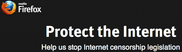 Mozilla 一直是互联网开放的支持者,它反对 SOPA,预示把浏览器的开始页面拉黑,并醒目的打出“SOTP CENSORSHIP(停止审查)”的标语。