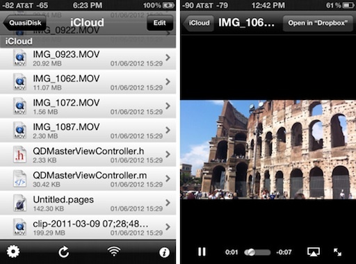 然而,独立开发者 Chris Simpson 开发的 QuasiDisk,则把 iCloud 变成像 Dropbox 那样的网盘,利用 iCloud 的同步功能,让用户在多个设备中同步文件。该应用支持多种文件格式(可以直接在手机上打开预览),比如 Pages 文档、Keynote 文档、Numbers 文档、PDF、 微软的 Wrod、Excel 和 PPT、文本文档等,还可支持 MOV、MP3、WAV 等视频音频格式。