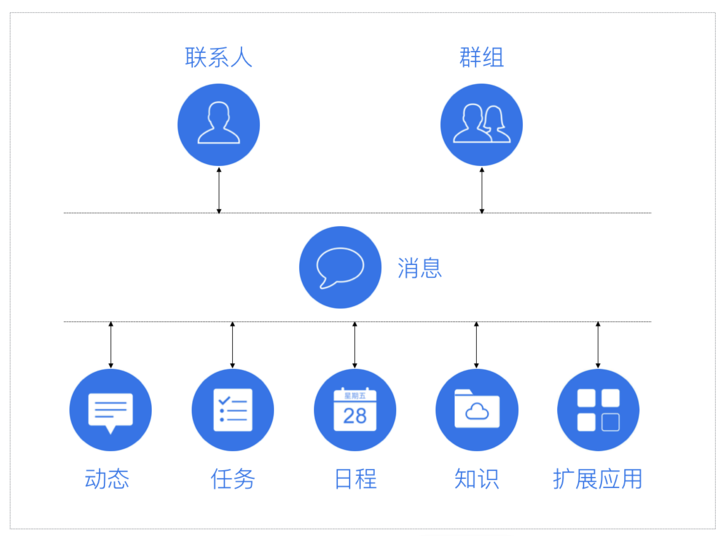 对于用户来说, 他进行操作的起点/终点几乎是可以确定的——发起某项任务,记录了一个日程,最终产生了一份文件。然而,发起了任务之后,如何进入日历,然后工作的产出如何交付,其实是每一款协作工具需要下工夫去优化每一个细节和体验的地方。