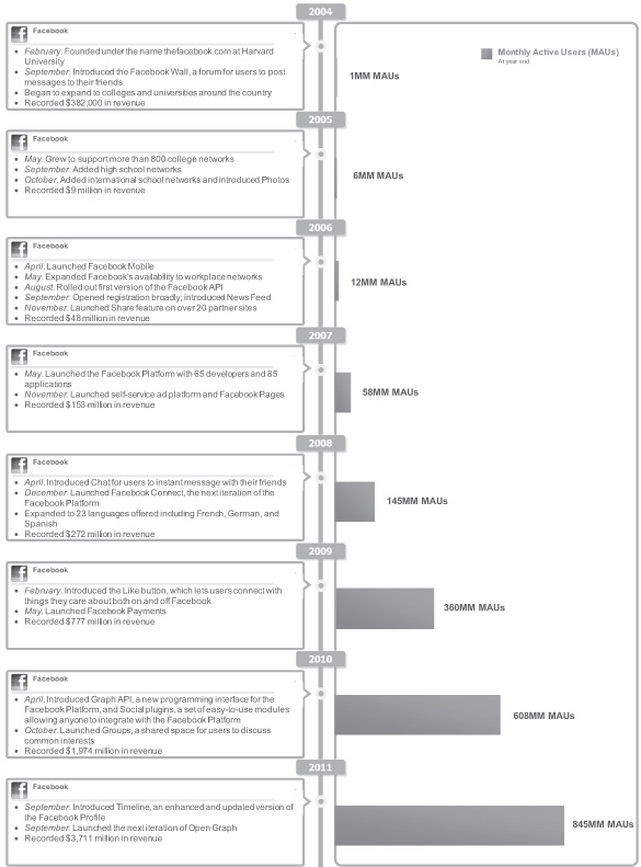 广告依然是 Facebook 最主要的收入来源,占 85%。得益于连年用户量迅猛的增长,来自广告服务的收入增加了 42%。由于广告精准投放能力的增强,公司平均广告费增加了 18%。其中《华尔街日报》2011 年花了 420 万美元,Netflix 花了 380 万美元用于在 Facebook 上刊登广告。