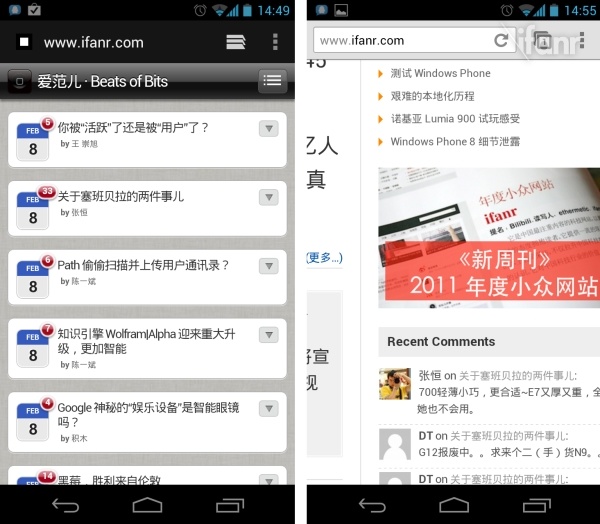 最让人郁闷的可能是 Chrome Beta 只能运行在最新的 ICS 系统之上,如果你的手机没有运行最新系统,可能就无法体验了。