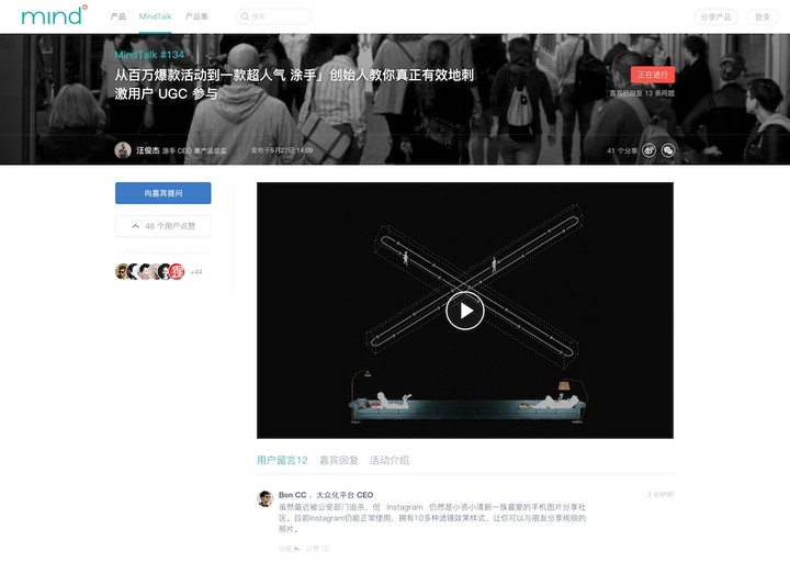 M 君:之前好几位 MindTalk 的导师,包括 Faceu 的创始人郭列,还有高能贩联合创始人、《增长黑客》作者范冰等都提过「MindTalk」很适合做成视频直播的形式,我们接下来的产品更新中,有没有这样的考虑?
