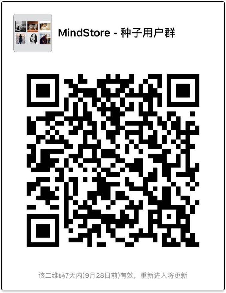 PS:MindStore 功能更新,希望招募测试用户,希望和大家一起完善 MindStore 的体验。请扫描以下二维码入群——