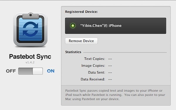 为了配合 PastBot,用户需要先从官网下载配套的 Mac 桌面软件 Pastebot Sync。然后让 Pastebot Sync 与 Pastebot 配对,当配对成功后,出现以下界面:
