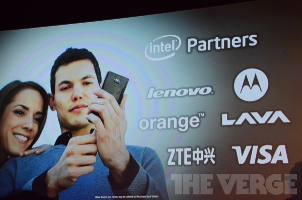 其中,Orange、Lava International 已经发布了基于 Medfield 的手机,均搭载 1.6 GHz 的 Atom Z2460 移动处理器。而 ZTE 则没有透露具体的细节,但称今年下半年将推出 Medfield 手机。摩托罗拉出现在英特尔的合作伙伴名单中,但没有登台。