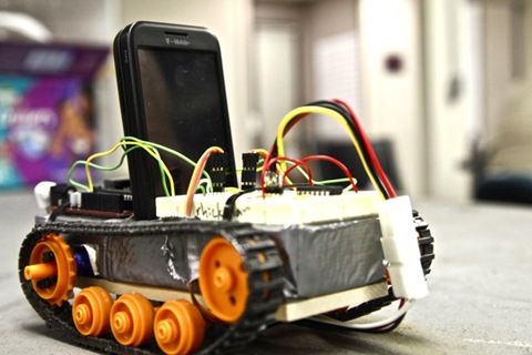 这意味着他们可以利用 Android 手机的所有软硬组件,通过编程让机器人能够规避障碍;识别人脸人声;精确定位并前往指定地点。常用来建立软硬件连接的 Arduino 板做不到这些,但 Android 手机可以。