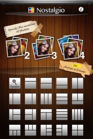 Nostalgio 就是这样一款应用。它能够将不同的照片拼起来,当拼完图后,一天的精彩内容就记录了下来。应用内置了 19 种不同的模板,最多拼 4 张照片。