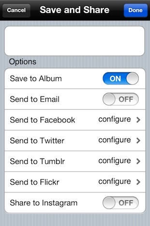 当然用可以分享到不同的地方中去,包括用电邮分享、Facebook、Twitter、Tumblr、Flickr、Instagram。
