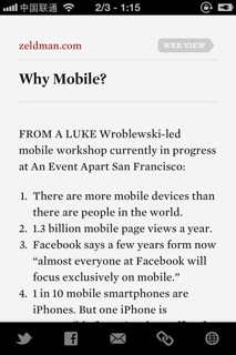 而后,我还用它们来抓取一篇分为两页的中文长文,发现不论 Readability 还是 Clearly 都添加了很多与文章本身无关的元素进去,阅读体验反而没有得到改善,但 Read it Later 则还原了一个除了内容以外,什么都没有的干净版面。