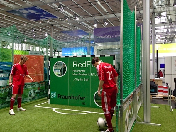 Fraunhofer 集成电路研究所 IIS 的 RedFIR®。 作为世界知名的音频及多媒体专家,Frauenhofer IIS 作为MP3 技术的主要发明者在业内享有很高的声誉。这次展会他们也有专门的展厅,向大家展示科技在生活、工作中的运用。开展前,我们有幸看到了由他们开发的 RedFIR®,世界第一个成功装载有“无线追踪科技” 芯片的足球,并已经开始试用于在纽伦堡的足球场,通过芯片发送的信息,对运动员的活动进行精确的纪录和分析。