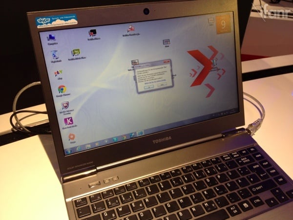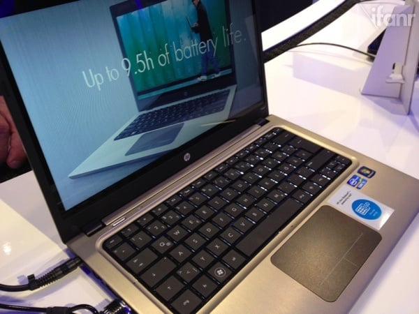 惠普在展台上展示了两款超极本,一个是适用于商务用户的 Folio 13,一个是针对对影音有高要求的个人用户 Envy 14 Spectre 系列。在和在场的惠普工作人员交流的时候,他们还是强调保留以太接口对于很多商务客户来说,还是很有实际意义的。 Envy 14 Spectre 可能是这些超极本中,最沉最厚的一个,当然我感觉了一下,应该还是比我自己现在使用的第一代铝壳 Macbook还是轻的。它的重量主要集中在 “Gorilla” 的玻璃上,这种玻璃不仅运用于屏幕,还用在上盖,掌托和触摸板。它的亮点除了玻璃的大量采用之外,和 Beats Audio合作的音效,的确应该会有些拥趸。而且惠普还为它在同一边配置了两个 USB 接口以及可自己更换的电池,而非其他机器的一体化。