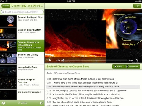Khan Academy 开发的 iPad 应用,已经在 App Store 上架。它能够访问网站上的教育视频,而且还提供字幕。