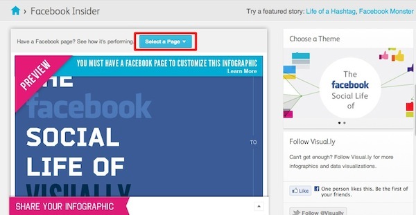 Facebook Insider 是 Visual.ly 利用 Facebook 制作信息图的功能。它能够以图形化的方式展现 Facebook 专页的数据,比如粉丝数量、粉丝性别比例、年龄比例、来自何方、有多少人看过专页并转发过里面的故事等等。