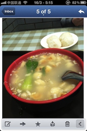 将手指放在一封邮件上,然后往左拉,就会出现几个动作选项,分别是:转发、加星标、设置标签、存档、放入垃圾箱。在平时不是大批量处理邮件的时候,这个动作很方便。