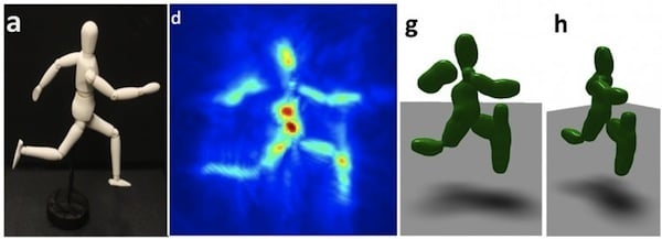 以下是通过计算光子反射长短,从而计算出物体形状的对比图,a 是原物体的图、d 是相机所看到的图、g 和 h 则是通过计算机成像所得到的三维图形。尽管最终得到的结果和拍照对象有不太一致的地方,但对于一个尚处于试验阶段的技术而言,这个结果已经预示了一个充满可能性的领域。