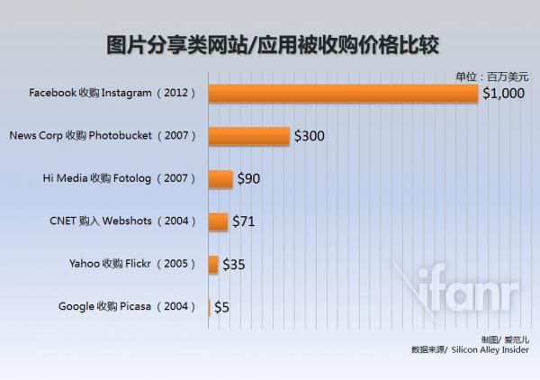 我们可以比较一下图片分享类网站和应用的收购价格: