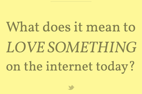 我们每天能够看到成百上千篇文章、视频,然而我们从来不会回头再看它们一遍。即使我们真的很喜欢它,把它们发到到 Twitter 上,与我们自己所有的粉丝分享,我们不会回头再去看它。因此,我认识到,如果热爱互联网上的某些东西,那么意味着某些时候人们会回头重新去看它。而我则认识到,这种行为是多么的稀少,至少对于我而言如此。