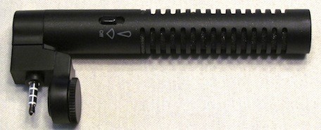 上图是能够增强录音效果的 LiveAction Mic,内置一节 AAA 电池,能够直接将它插入手机顶端的音频插口中,在上面还有一个类似开关的按钮,能够决定录音的范围是宽还是窄。当录音范围变窄的时候,设备能够只录制在设备跟前的那个人的声音,而自动将环境的杂音去掉。对于记者而言这个设备十分有用,尤其在人声嘈杂的环境。