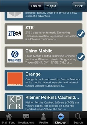 不过,两者的操作并不一样。在 Wavii 中,不管是任何感兴趣话题的新闻,都会统一按照时间在主界面上排列,不提供话题分类;而 Zite 则提供话题分类,用户要选取相应的分类,才能阅读相应话题的新闻。最大的分别还在于它们的信息来源,Wavii 依赖于用户个人在 Facebook 所发布的信息,而 Zite 则从 Google Reader 和 Twitter 或是更广阔的网络中截取素材。此外,Wavii 不但能够让用户跟随自己喜欢的话题,还能让用户跟随自己喜欢的人。