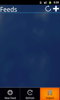 在第一次打开应用的时候,它会让用户导入自己在 Google Reader 中的 RSS 订阅列表。