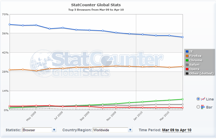 Opera 昨天宣布目前已有一亿用户在使用 Opera 浏览器,其中半数为移动用户。根据 StatCounter 提供的数据,Opera 旗下的两个移动浏览器的市场占有率之和已经逼近移动版 Safari。今年随着 Android 版的推出,Opera 在移动领域的占有率持续攀升,现在已经达到 25.79%。
