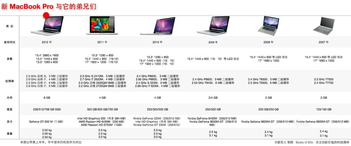 新 MacBook Pro 与过往系列机型的对比(点击图片放大):