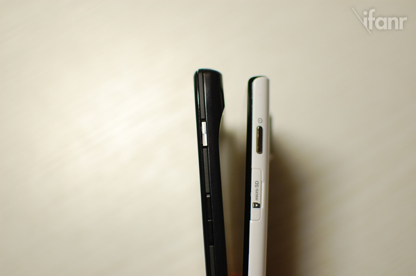 侧面的解锁键位置差不多。不过 RAZR XT910 的音量键需要方便一些: