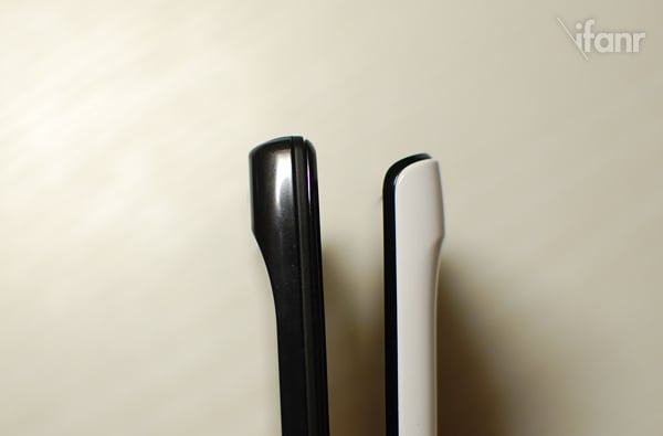 很明显,华为 P1 是上薄下厚,摩托罗拉 RAZR 是上厚下薄。