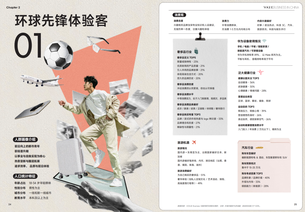 比如环球先锋体验客:他们是生活在一线和新一线城市前沿向上的都市青年,以事业发展和自我实现为现阶段生活核心,正处于职场晋升期,热衷尝新和圈层拓展,同时追求效率、品质和前沿体验。他们目前消费力处于中等,将个人视为最重要的 「资产」 ,其消费本质是对未来潜力的投资,旨在加速 「自我实现」 这一核心 KPI 的达成。相较于资产积累, 他们更看重生命丰富度,必要的体验是构建 「有趣灵魂」 的必要素材。