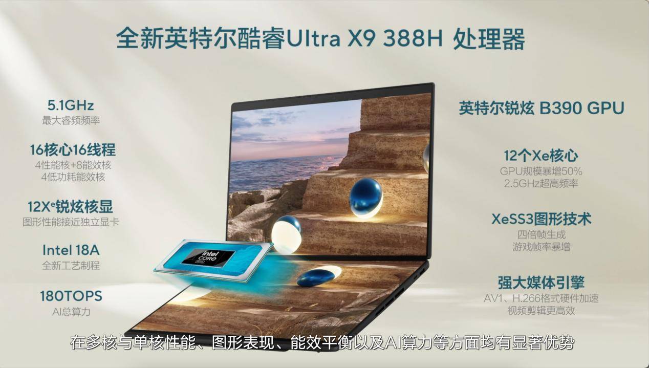 作为轻薄笔电届的高能代表,全新华硕无畏Pro系列搭载第三代英特尔酷睿Ultra系列处理器,基于先进的英特尔18A制造工艺,16核心CPU释放强大的单核、多核性能;英特尔锐炫高能显卡B390凭借12个Xe核心、XeSS3图形技术、强大媒体引擎,提供卓越的图形处理能力;协同提供至高50 TOPS NPU AI算力的AI Boost NPU,以至高180 TOPS AI总算力高能炸场,并以超高能效比表现,彰显多场景统治力。