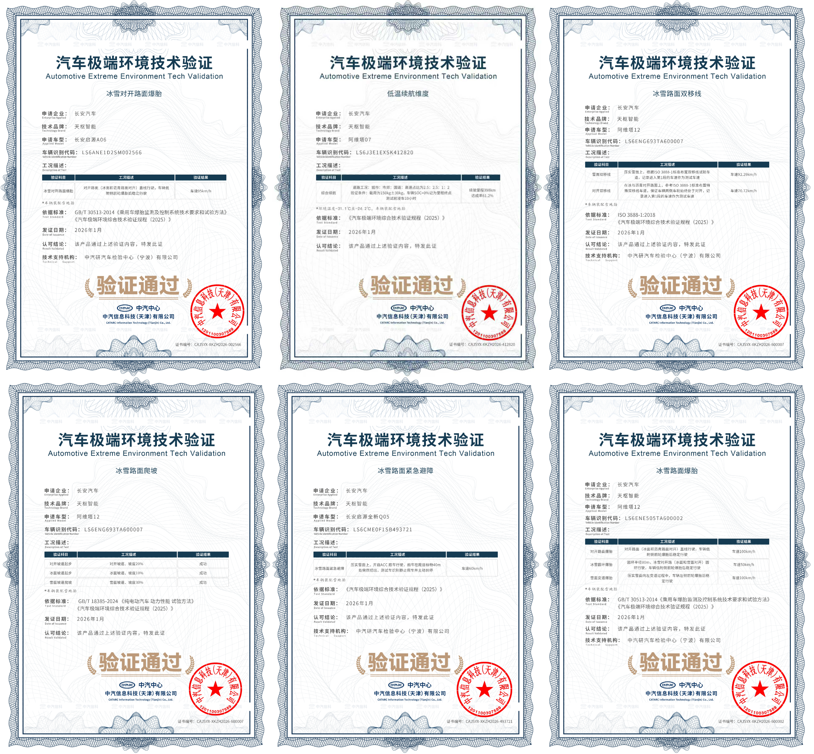 在中汽中心的权威见证下,长安旗下多款车型通过了冬季六大极端场景的技术验证 。