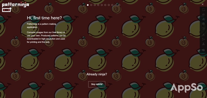 首先进入《Patterninja》主界面,选择新建以清空画布,接着可以设定背景颜色,然后就进入素材库添加新的贴图吧。值得一提的是,素材库的贴图有许多种类型,如圣诞节、花卉、果蔬或是科技类的图标。贴图可以添加一个或多个,均可以改变大小和角度,还可以整体调整间距和缩放。