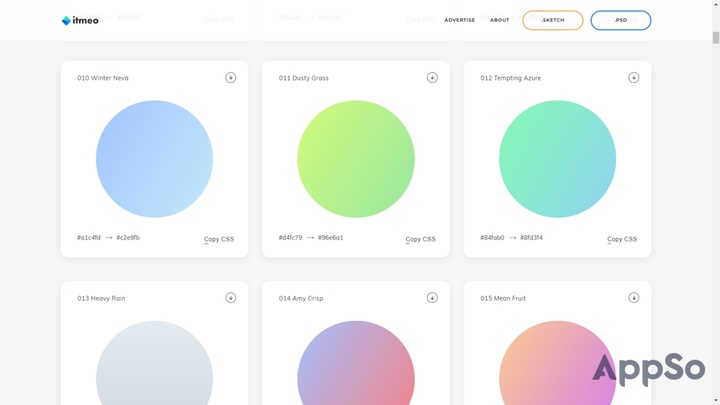 渐变壁纸可以很方便地使用 PPT 或PS 制作,但特别考验审美力,对于色彩搭配比较苛求。所以我建议还是使用现成的颜色组合吧,既保险又方便。我推荐一个个人常用的渐变色壁纸网站——《Webgradients》,里面的壁纸还是比较简约清新的,十分耐看。